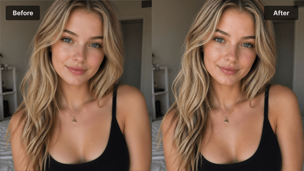 Das Modell erkennt die Art der Unschärfe – Bewegungsunschärfe, Fokusunschärfe oder Kompressionsartefakte – und rekonstruiert die verlorenen Kantendetails, anstatt die Pixel lediglich zu schärfen. Das unterscheidet KI-Schärfung von einem gewöhnlichen Schärfungsfilter: verlorene Details werden zurückgewonnen, statt Rauschen zu verstärken.
